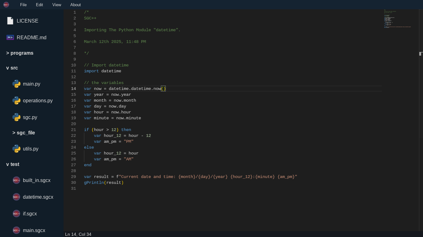 SGC++ is an enhanced version of SigmaGreg, designed with improved syntax and better handling. It offers cleaner, more efficient code with fewer limitations. Featuring better if-statements, greater compatibility with Python, and expanded functionality, SGC++ will be the coding language for freakers (good kind).